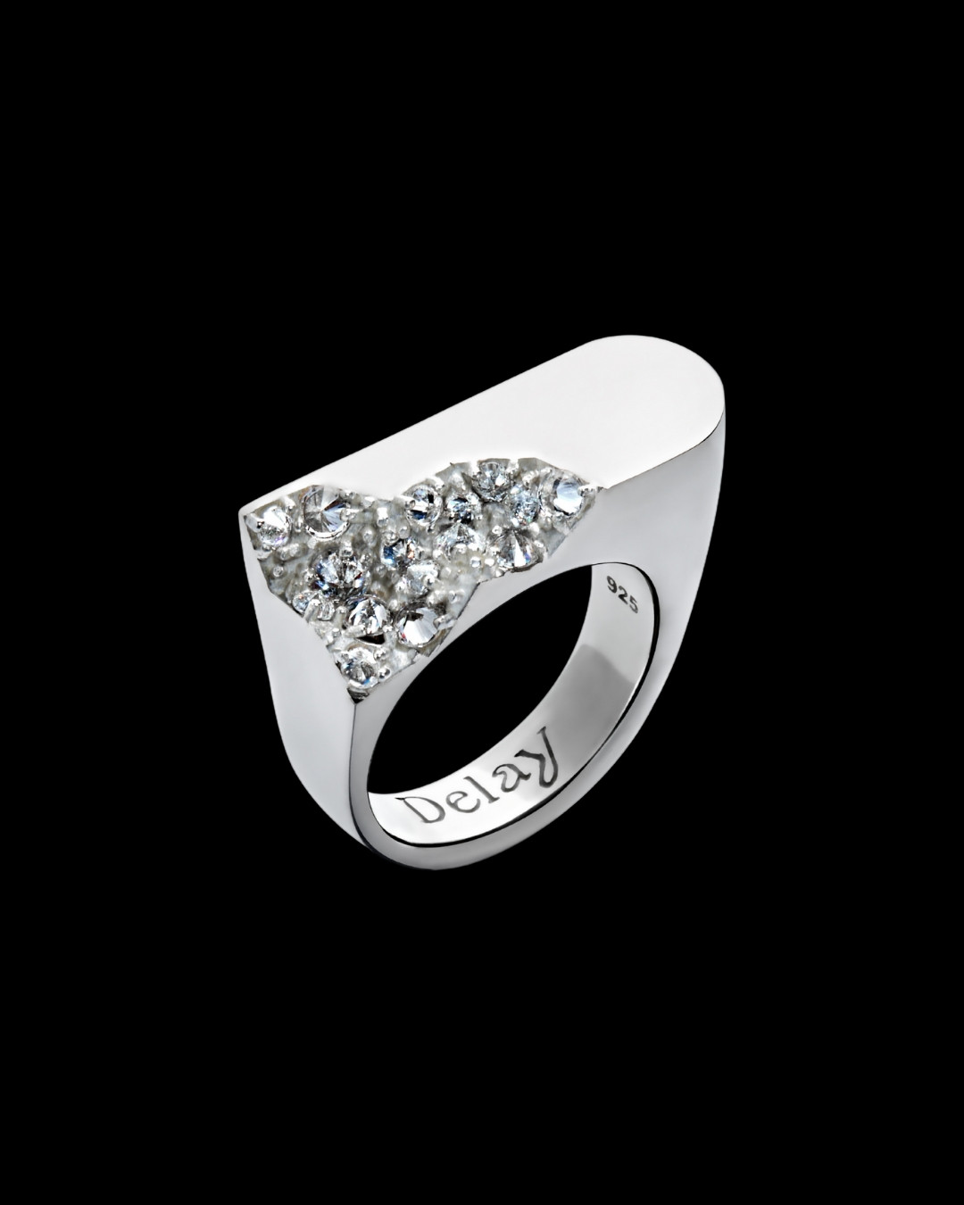 The inverted setting is an innovative and sophisticated technique where the zirconias are positioned with their tips facing outward, creating a unique aesthetic that reflects the texture of impact and adds a new dimension of shine and relief to the jewelry. Unlike traditional settings, where the stone's surface is exposed, the inverted setting reveals the opposite side, generating a distinctive appearance and standing out for its modernity. This technique requires precision and skill, as each zirconia must be carefully set to ensure both security and beauty, resulting in a striking and bold look—perfect for creations that aim to combine exclusivity and innovation.